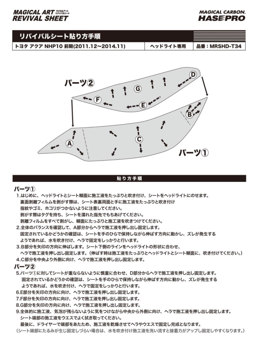 マジカルアートリバイバルシート ヘッドライト専用 トヨタ アクア NHP10 前期 2011.12~2014.11(MRSHD-T34)