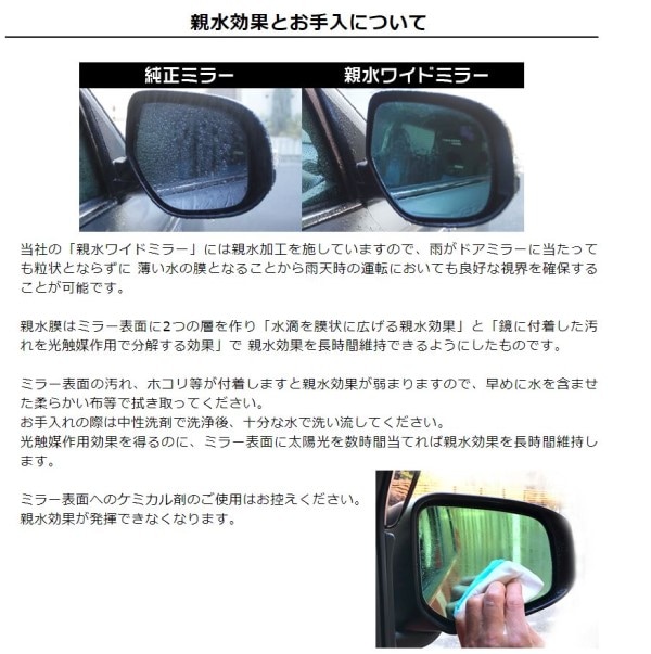 私たちの「親水ワイドミラー」は、運転の快適さを追求した結果生まれました。この梅雨シーズン、ぜひ手に入れてください。あなたのドライブライフを一段とサポートします。